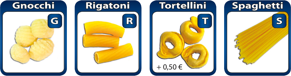Kobiniere Dir Deine eigene Pasta! Wähle Nudeln u. Sauce nach Deinem Geschmack! Auf Wunsch auch überbacken, Aufpeis € 1,00 Gnocchi (G) | Rigatoni (R) | Tortellini (T) + € 0,50 | Spaghetti (S) |